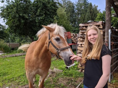 Es gibt Hühner für das tägliche Frühstücksei, ein betagter Haflinger, der bei uns seinen Lebensabend verbringt sowie